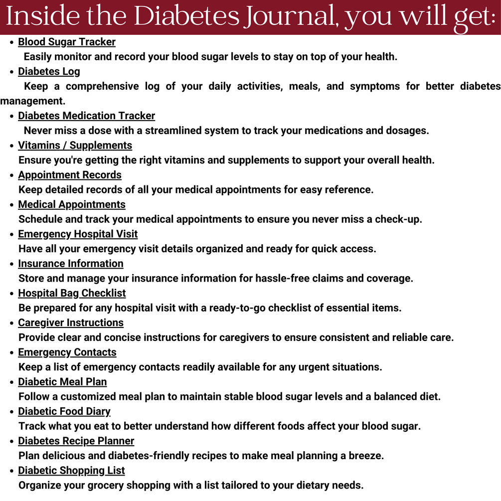 • Keep a comprehensive log of your daily activities, meals, and symptoms for better diabetes management.
